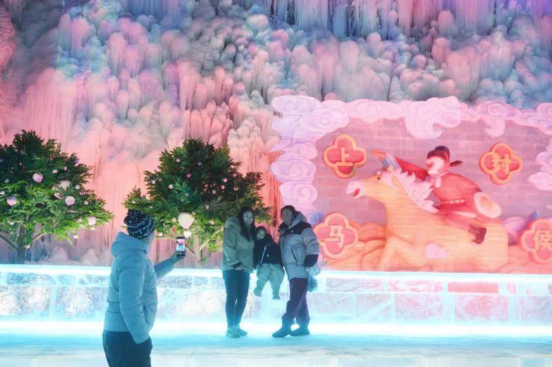 冰灯艺术节期间,特色活动持续加码。景区每晚定时上演“山体激光秀”,绚丽激光投射于巍峨峡谷崖壁,打造出可交互的银河冰洞与声光交响的极光穹顶,为观众带来强烈的视觉冲击。