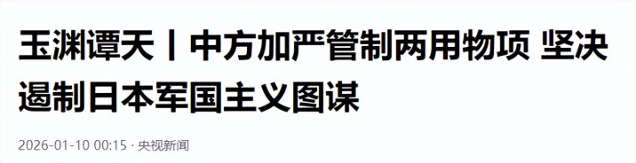 央视新闻:2026-01-10:玉渊谭天丨中方加严管制两用物项 坚决遏制日本军国主义图谋